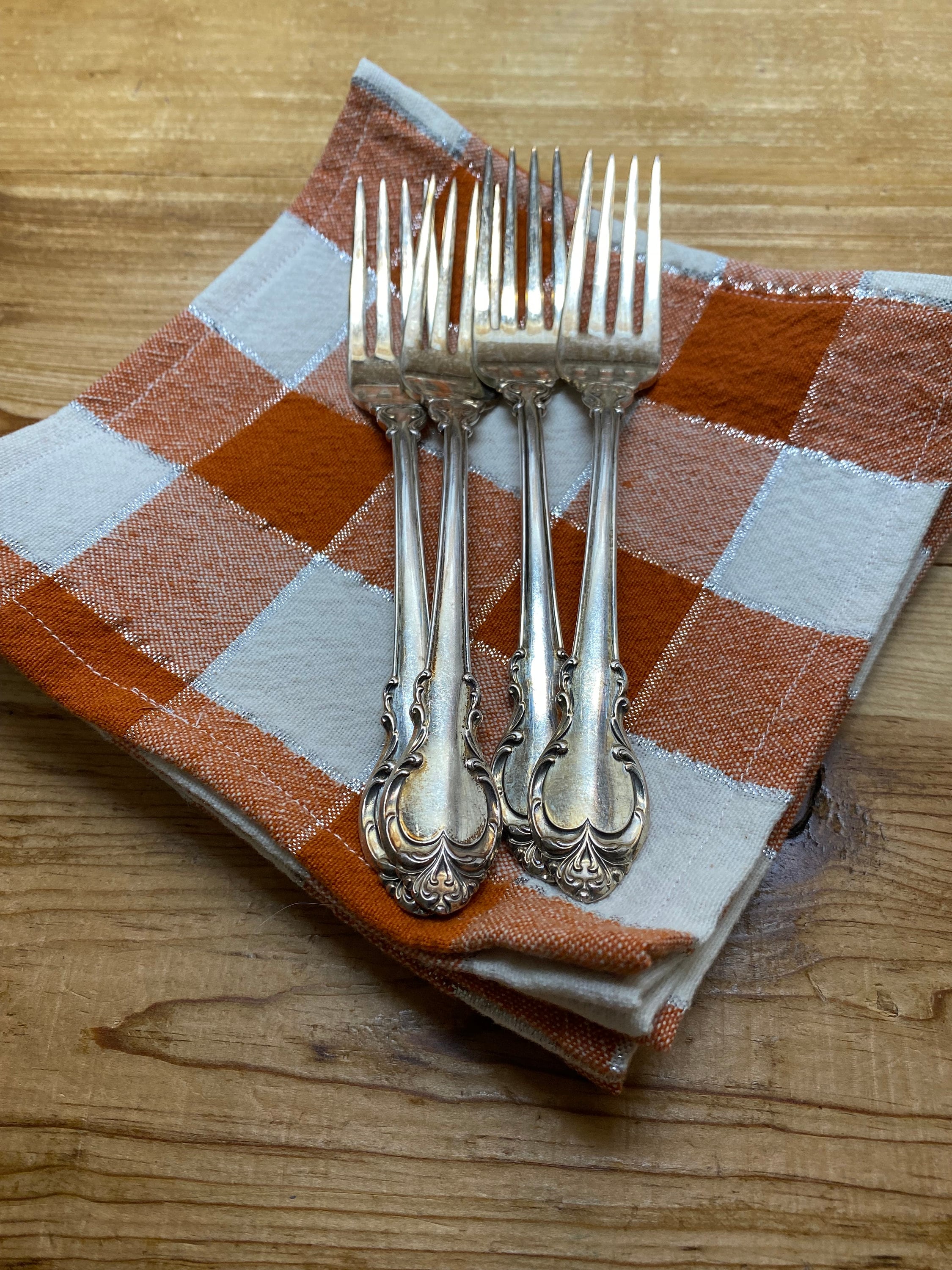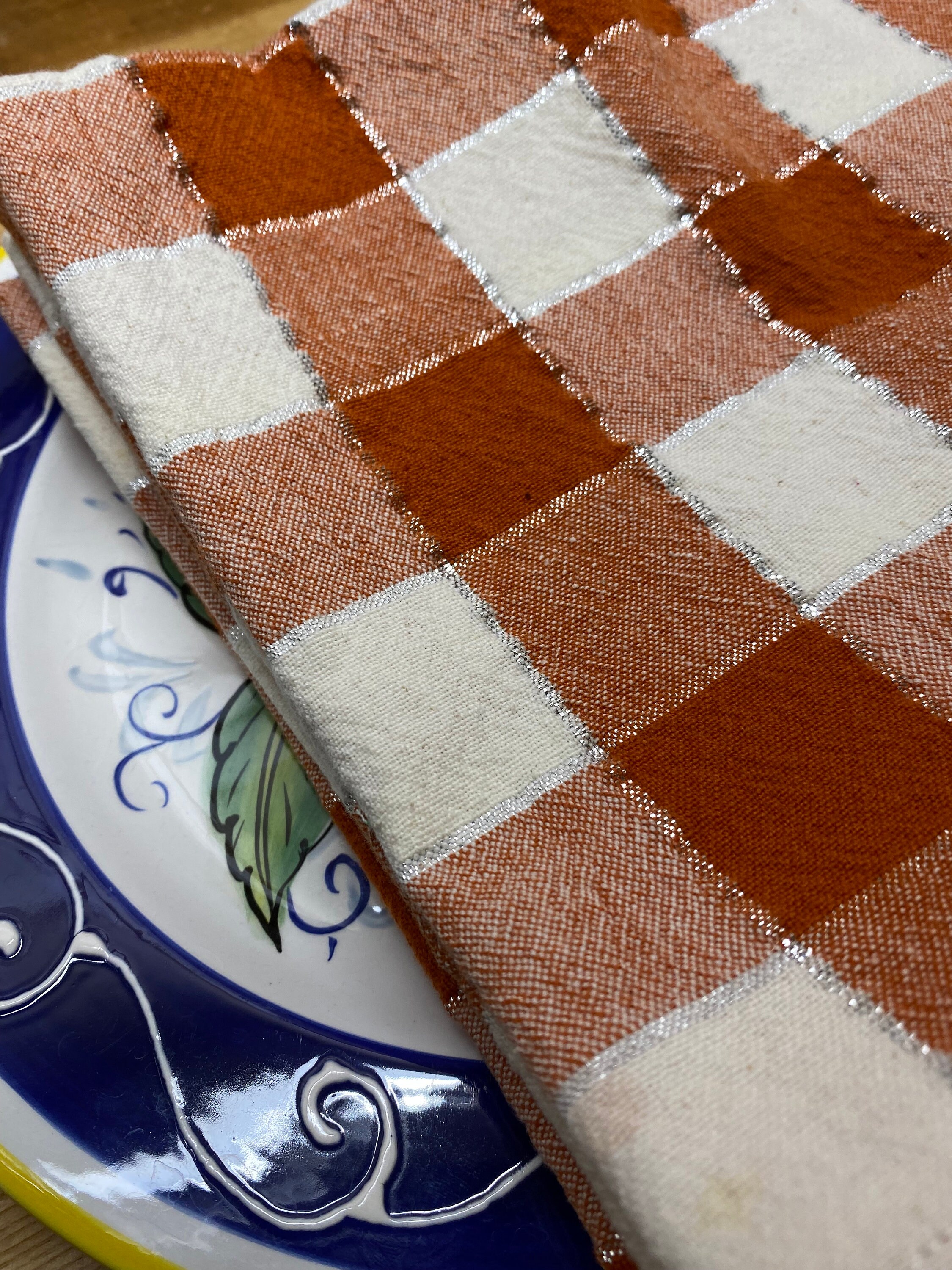 Vintage Plaid Pumpkin / Yam and Cream with Silver accents