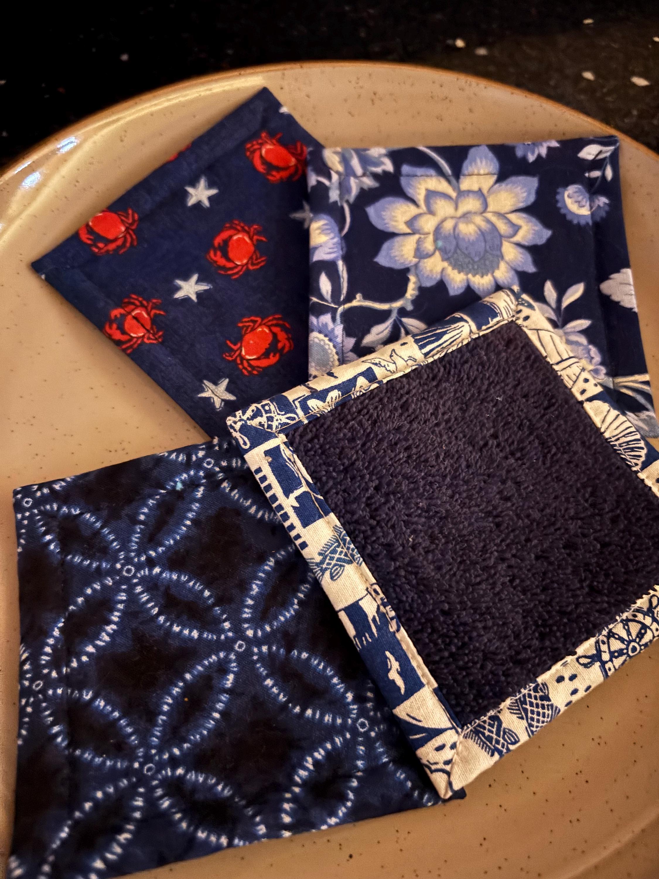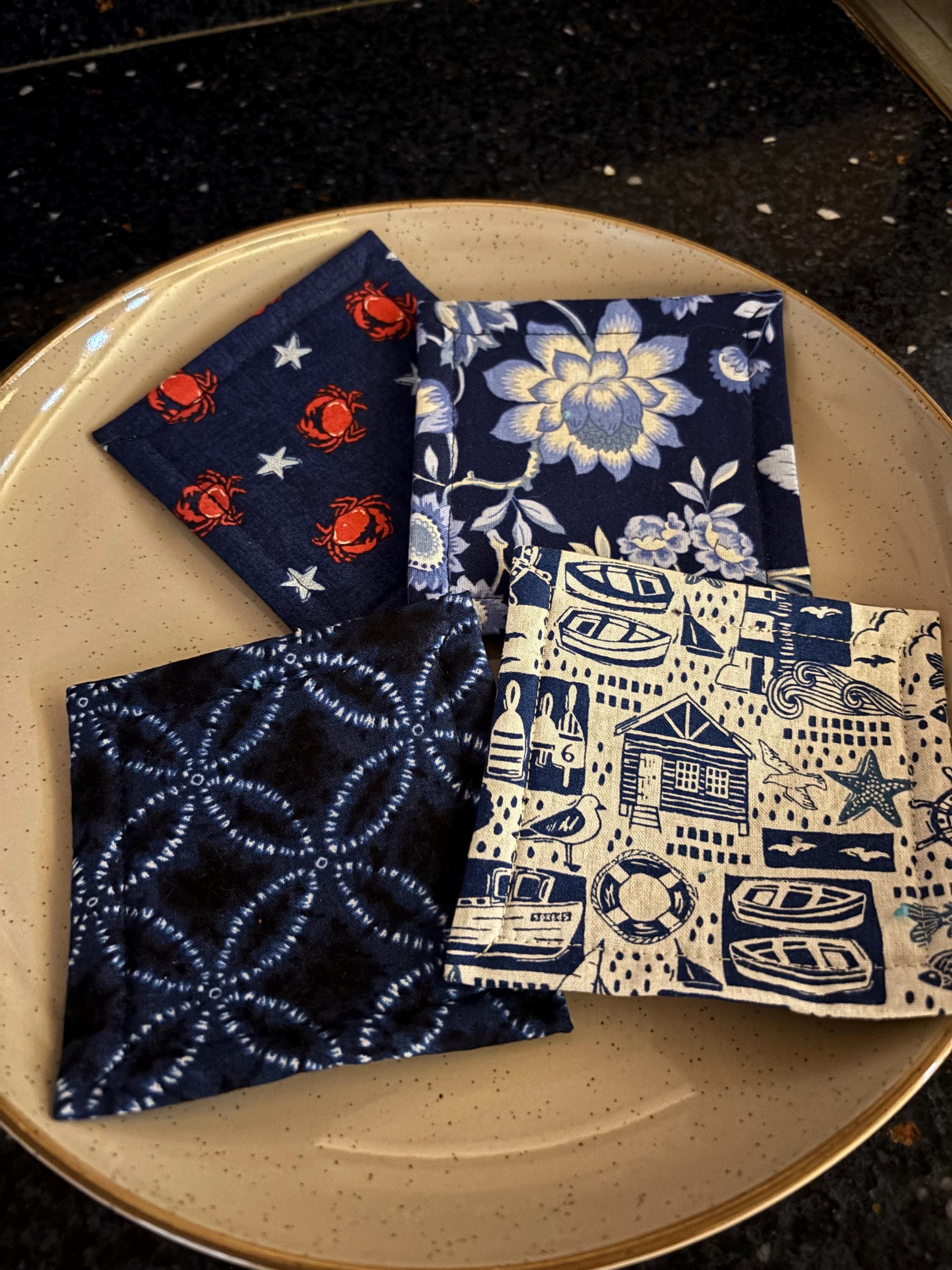 Set of 4 - FUN Blue Nautical Style Fabrics. (Exactly as pictured)