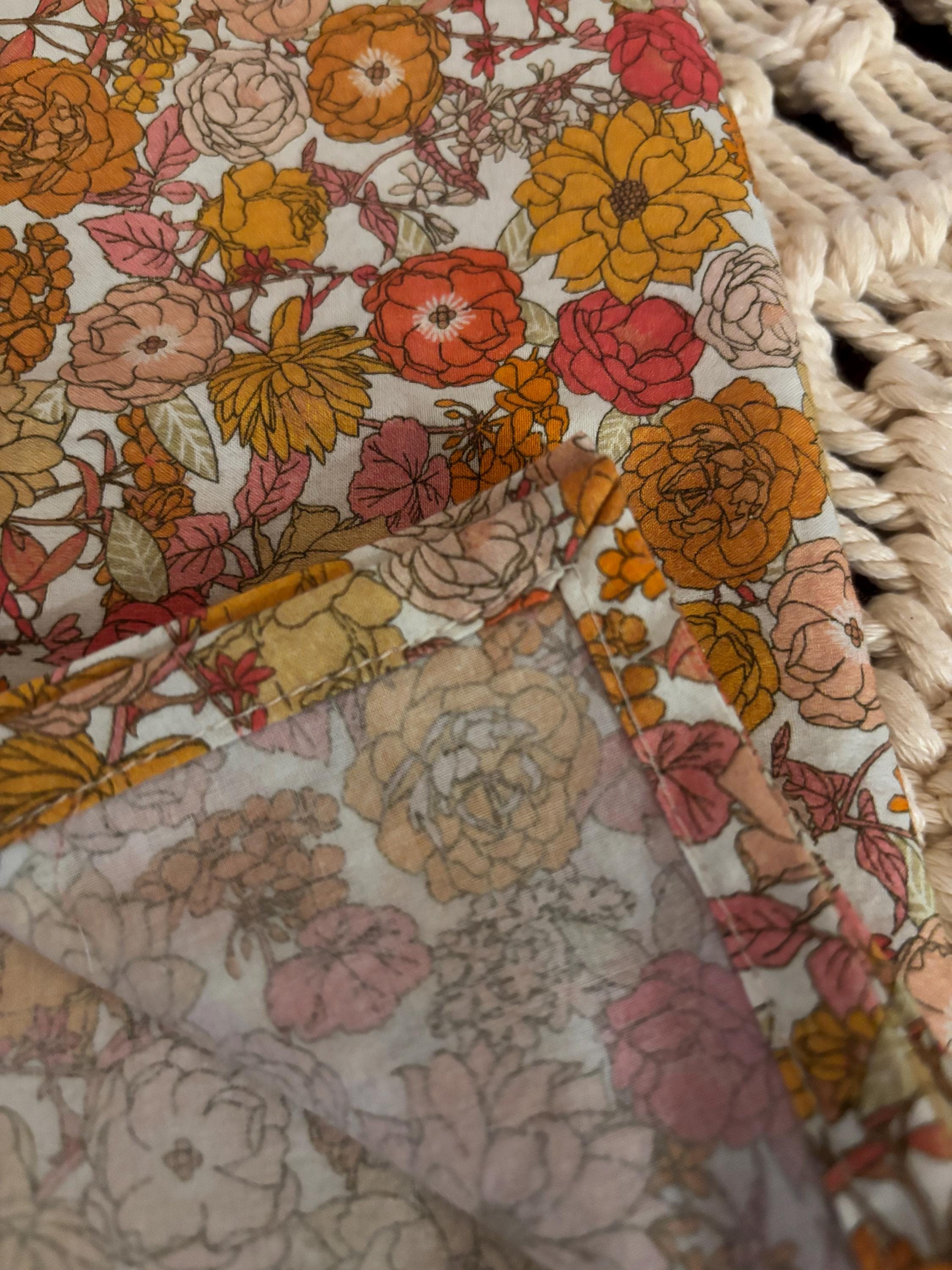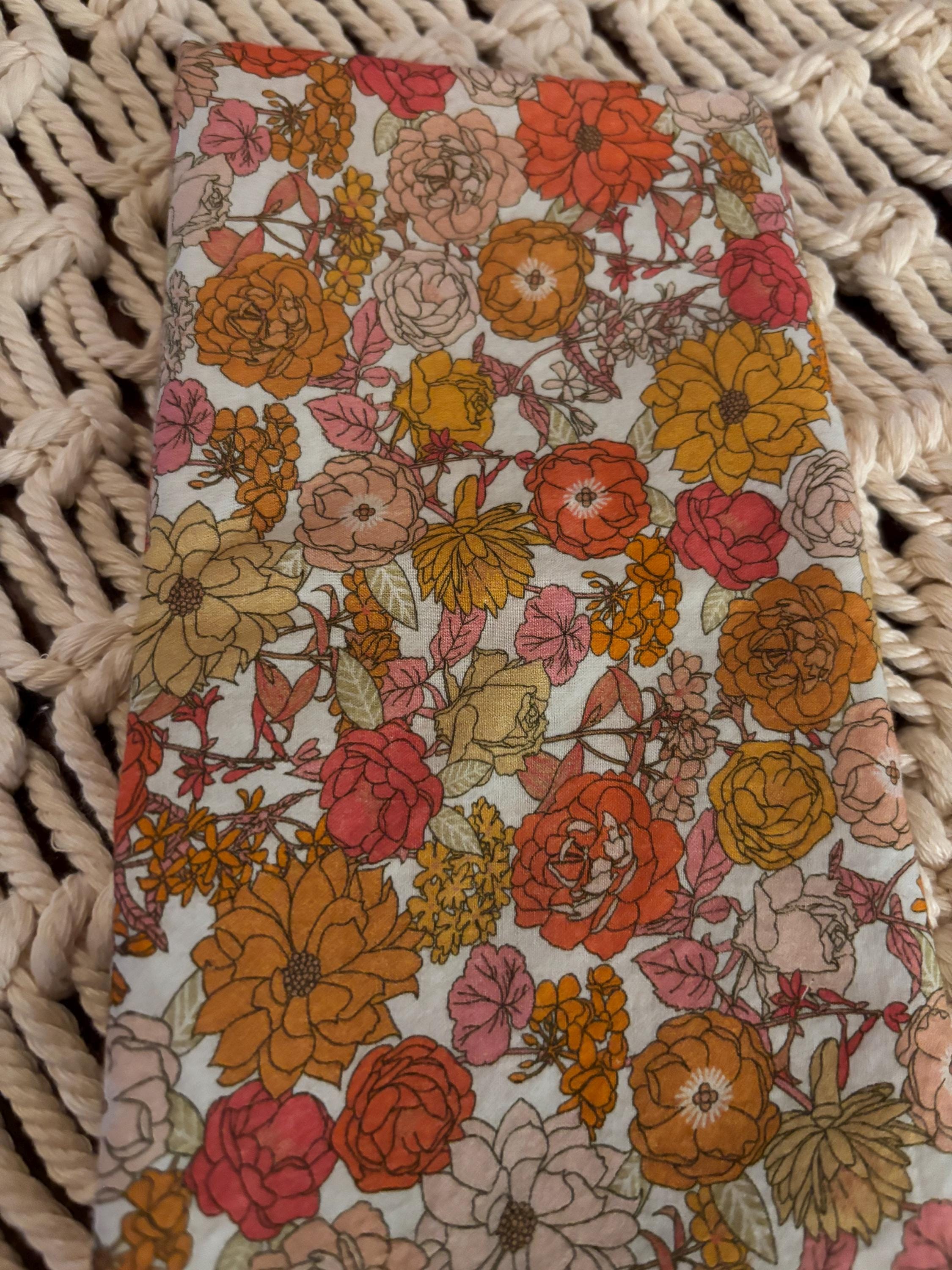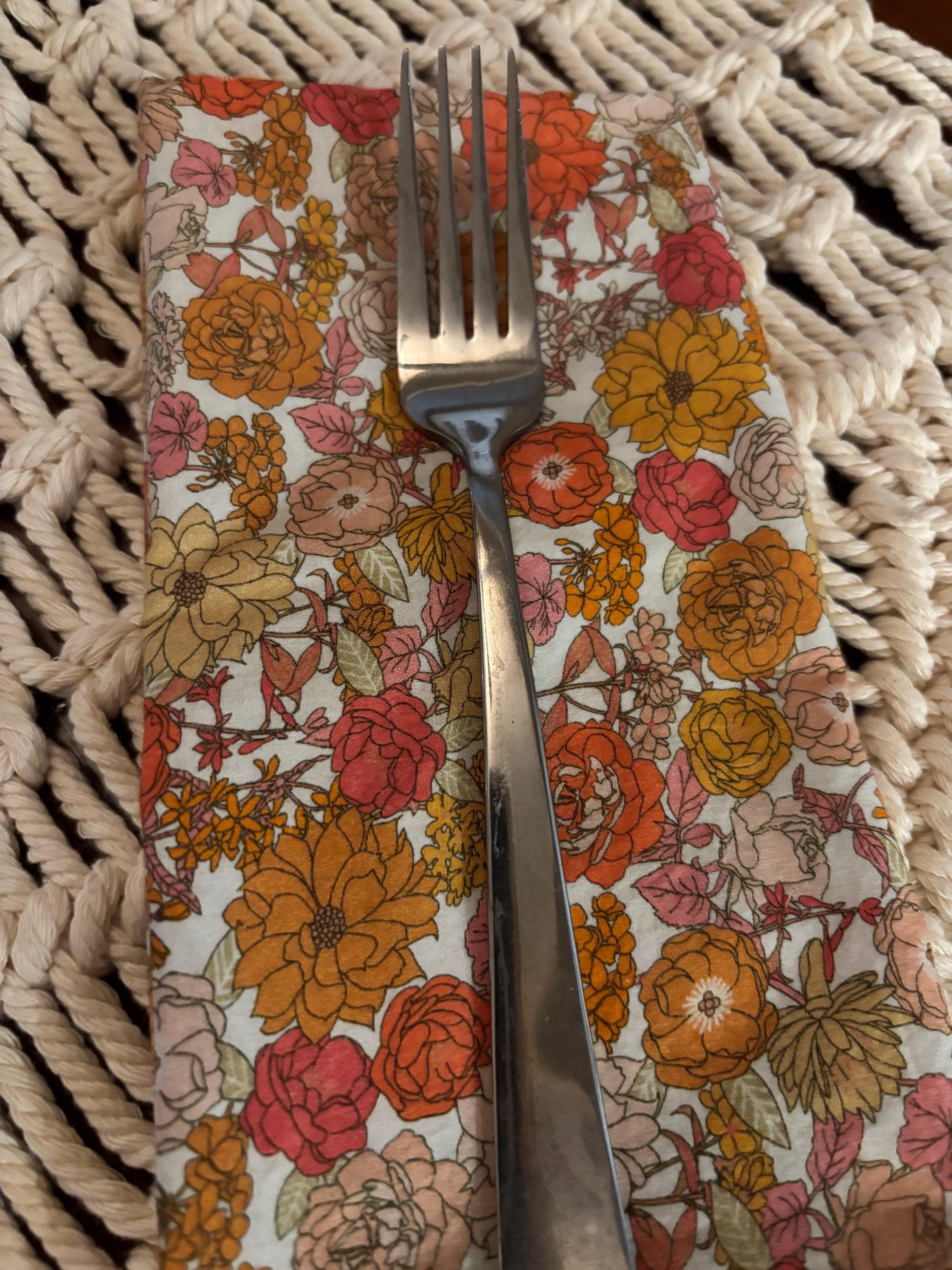 Colorful Dusty Rose, Apricot and Orange Floral Cloth Napkins