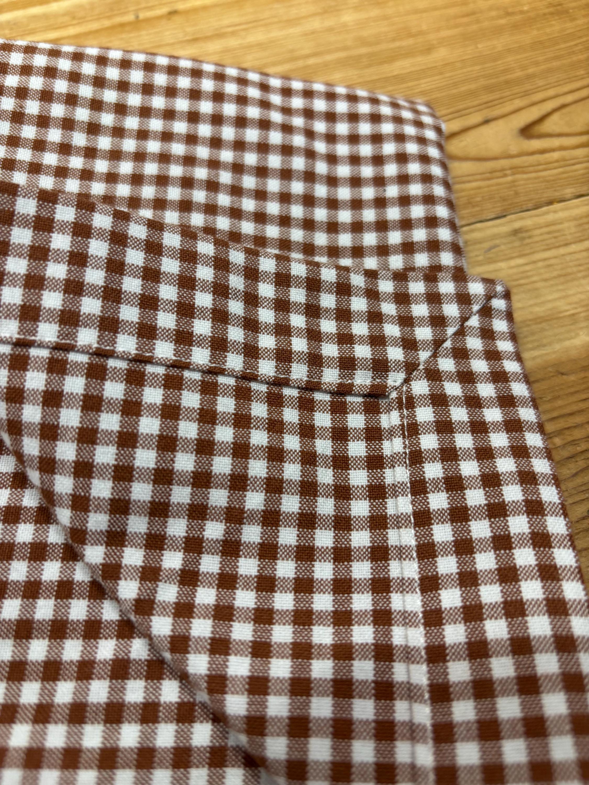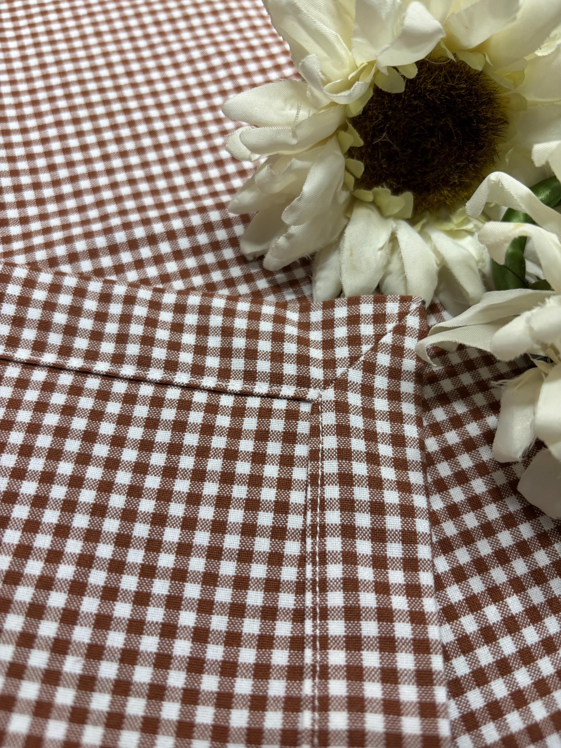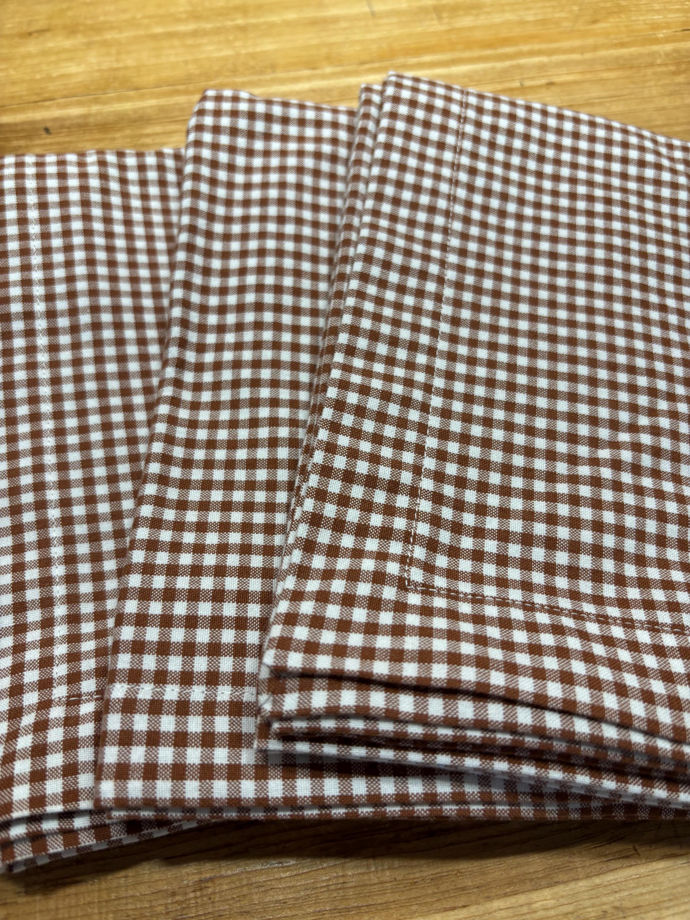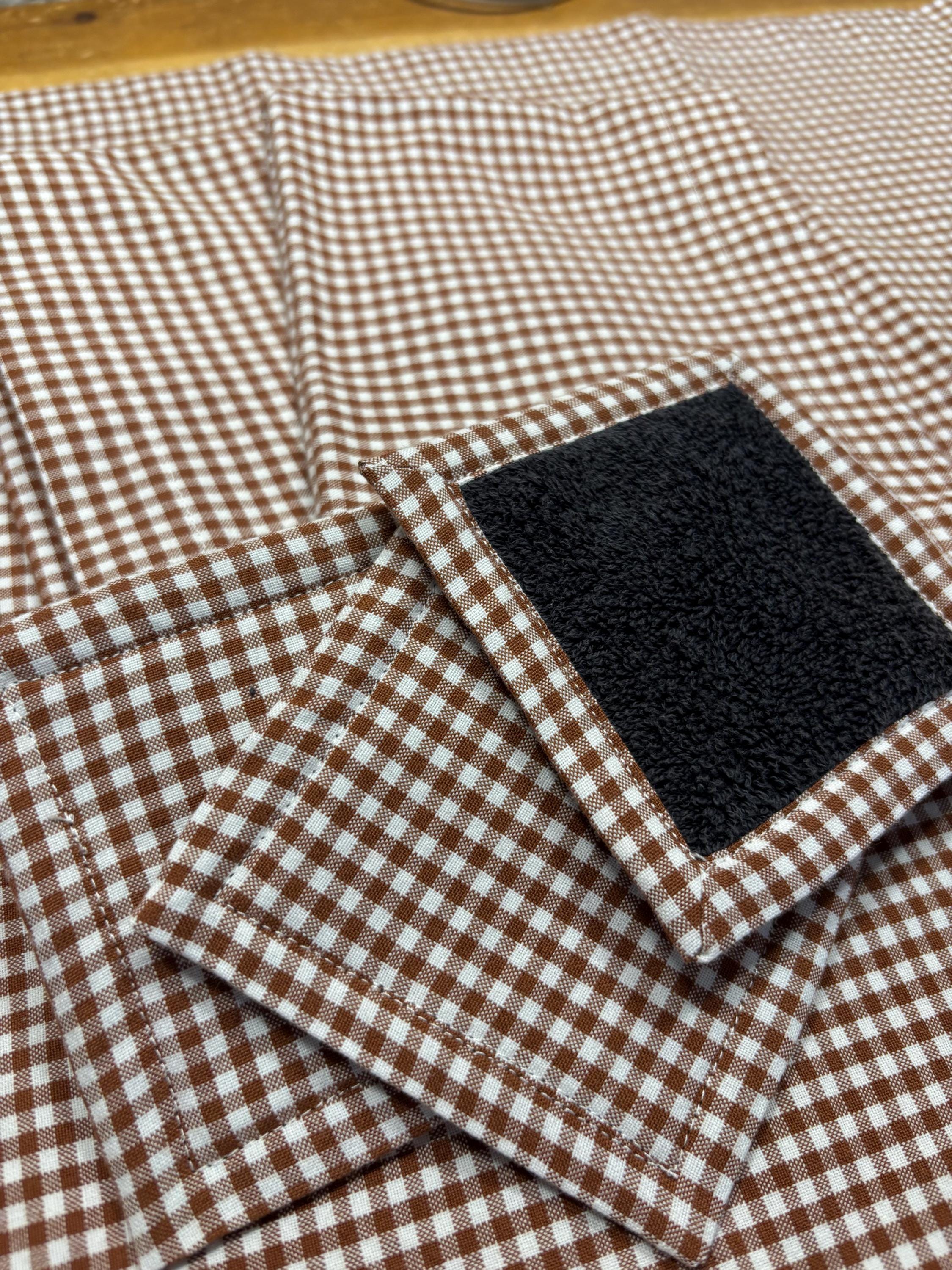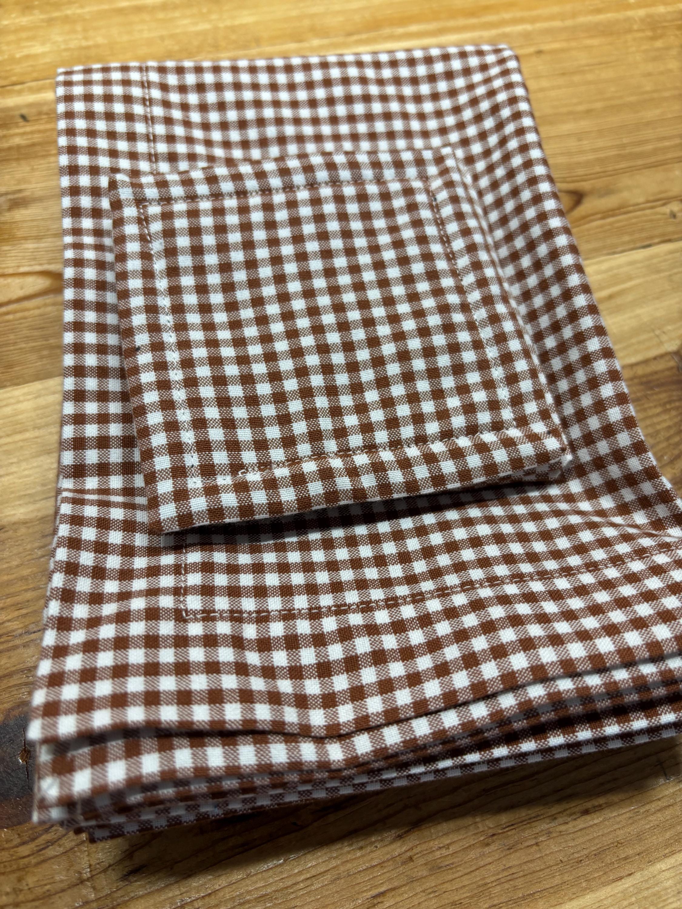 Hand towels made from 1/8" inch brown/white gingham fabric.