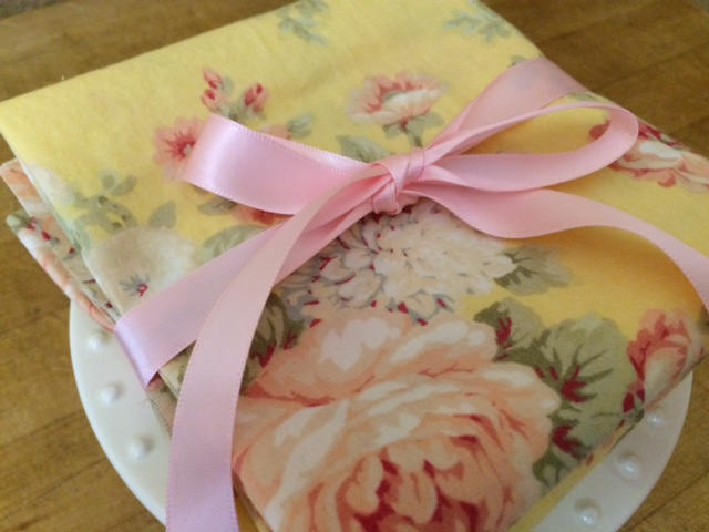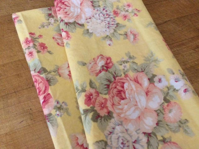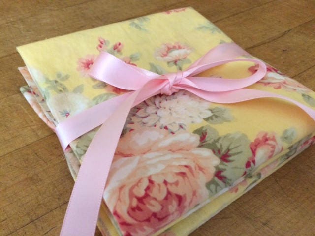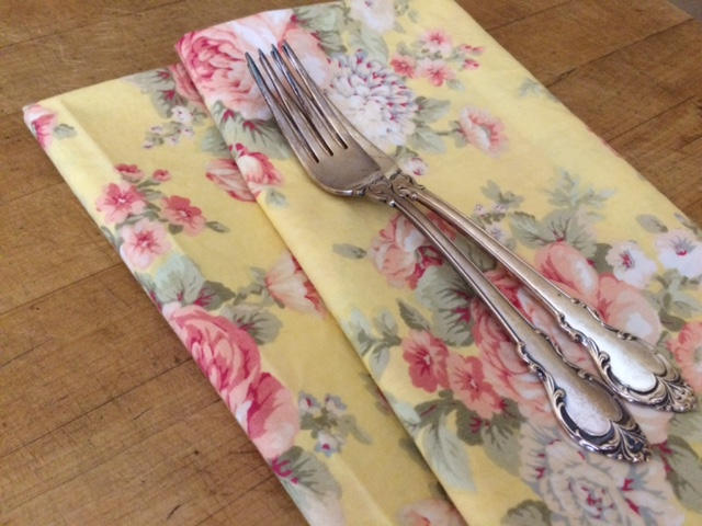 Cottage Chic Tea Party Yellow Pink Floral Cloth Napkins.