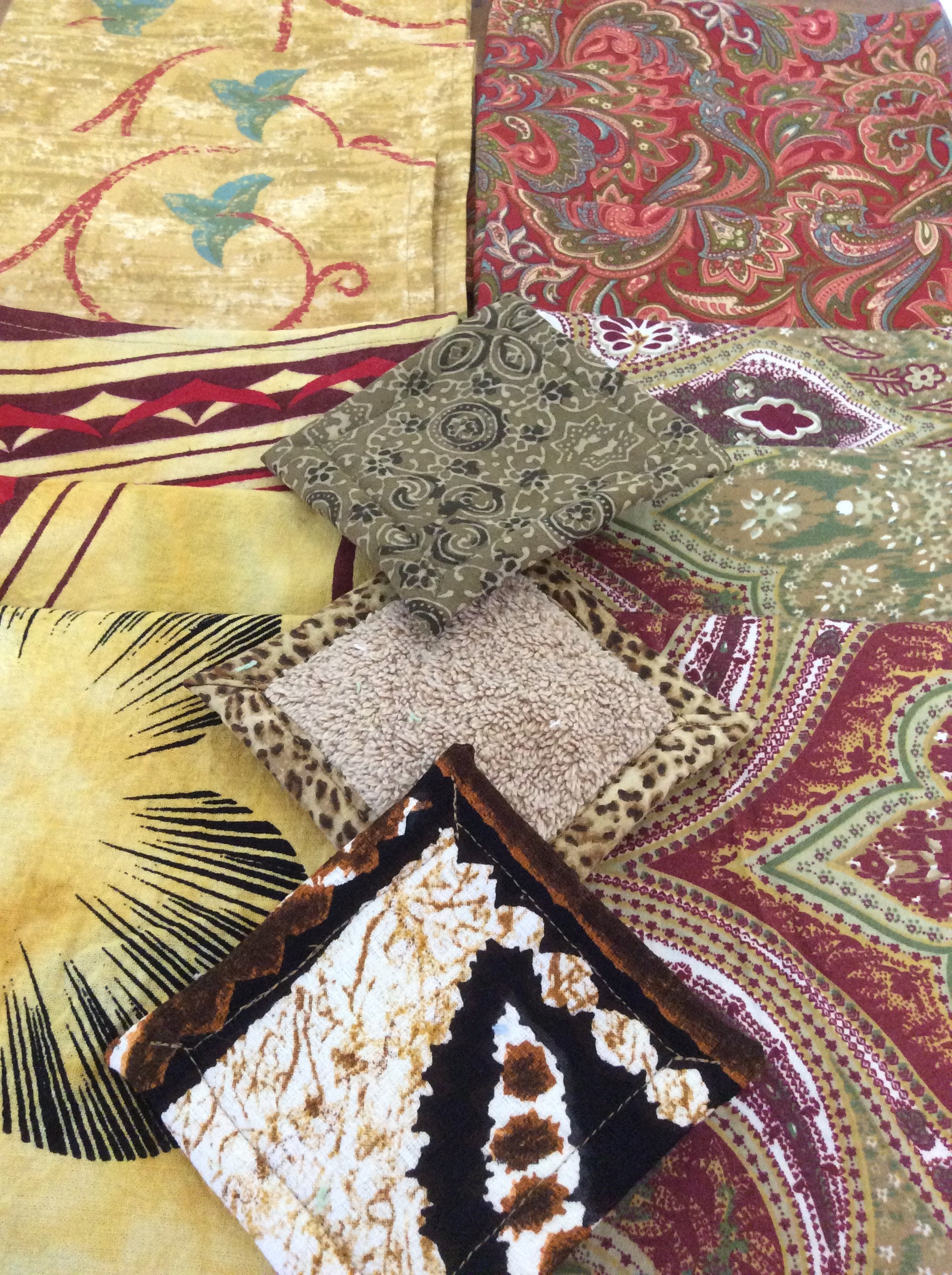 In this set you will receive fabrics in boho style fabrics similar to what is pictured and will vary depending on the fabrics I currently have in stock.